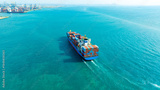 Aerial view of the freight shipping transport system cargo ship container. international transportation Export-import business, logistics, transportation industry concepts