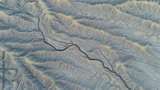Lunar landscape. Drought and dry riverbeds. Aerial view of desert structures. Global warming and climate change. Universal use. General shots.