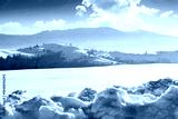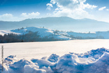 beautiful winter landscape with snow covered rolling hills under blue sky. majestic carpathian mountains on sunny day. frosty countryside scenery with snowy alpine meadow. remote region of ukraine