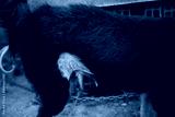 Dog suffering from dermatophytosis, showing a close-up of a fungal skin infection causing hair loss, redness, and inflammation on its body during veterinary examination