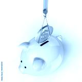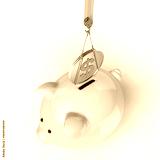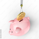 Crane lowering 3d dollar coin piggy bank