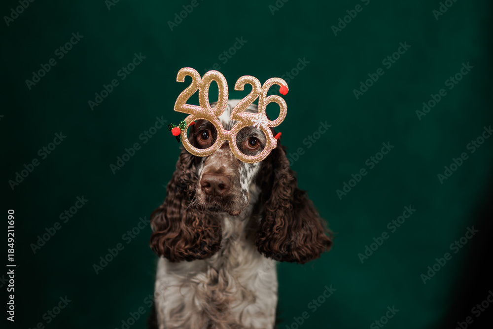Spaniel dog wearing glasses 2026.