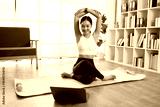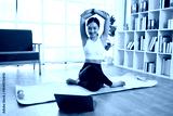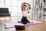 Female asian Yoga instructor conducting an online class with laptop