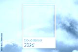 View of beautiful sky with clouds. Cloud Dancer - color of year 2026