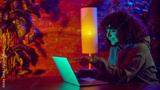 Young woman pointing at laptop screen during digital work session. Concept of user interaction, online services, interface navigation, remote collaboration and technology based tasks.