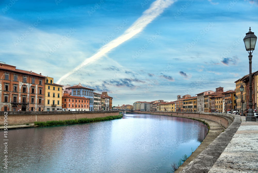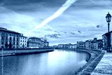 Pisa, the Arno river in the evening. Tuscany, Italy, Europe