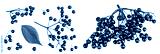 Ripe black elderberry or elder isolated on a white background. Sambucus. Top view. Flat lay
