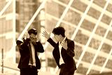 The boss complaining to him for mistake work. Depressed man employee from being reprimanded by the manager. background in big city