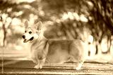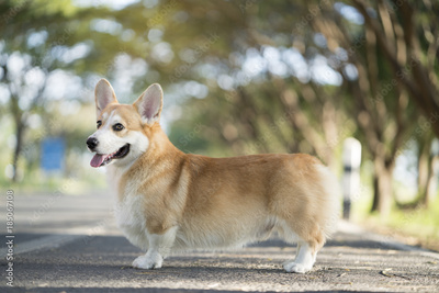 Corgi dog on the grass in summer sunny day