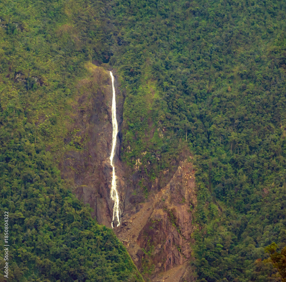 Waterfall on the hills of Mount Kinabalu from the forests of the Kinabalu Park, Sabah, Borneo, Malaysia