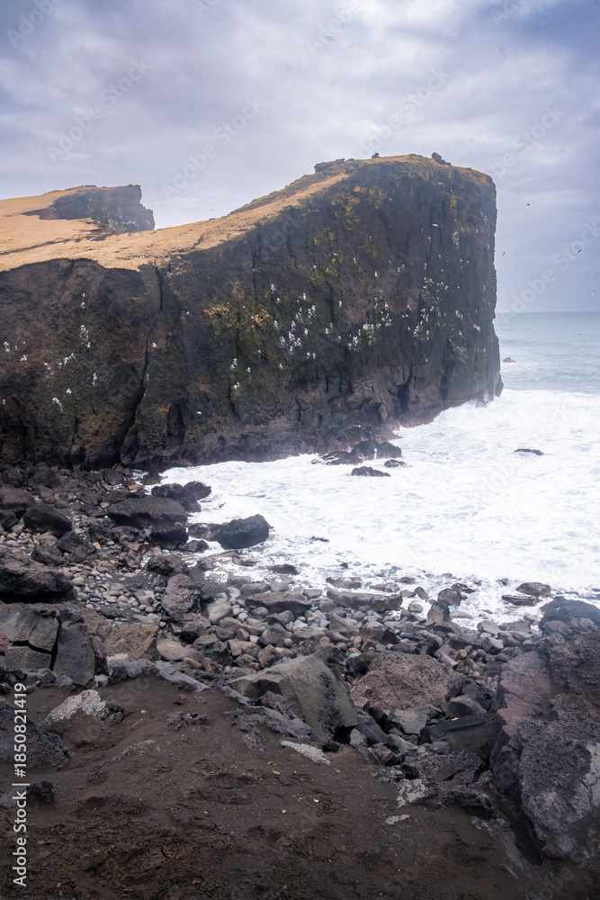 vertical view of the coast called Valahnukamol in the Reykjanes Peninsula during a cloudy day