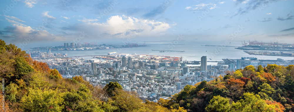 View of the modern city of Kobe from the Rokko mountain range, Kobe, Hyogo, Honshu, Japan