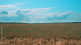 A Vast and Expansive Agricultural Landscape Bathed in Warmth Under a Clear Blue Sky