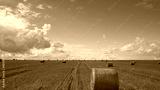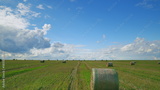 Vast and Expansive Greenfields with Hay Bales Meandering Under a Bright, Clear Blue Sky