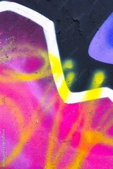 Graffiti art in neon pink, yellow, purple on textured wall. Retro 80s street style, bold colors, urban aesthetic. Flyers, digital art, creative banner, modern 90s visuals.