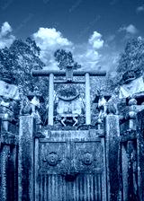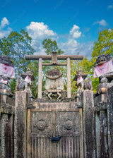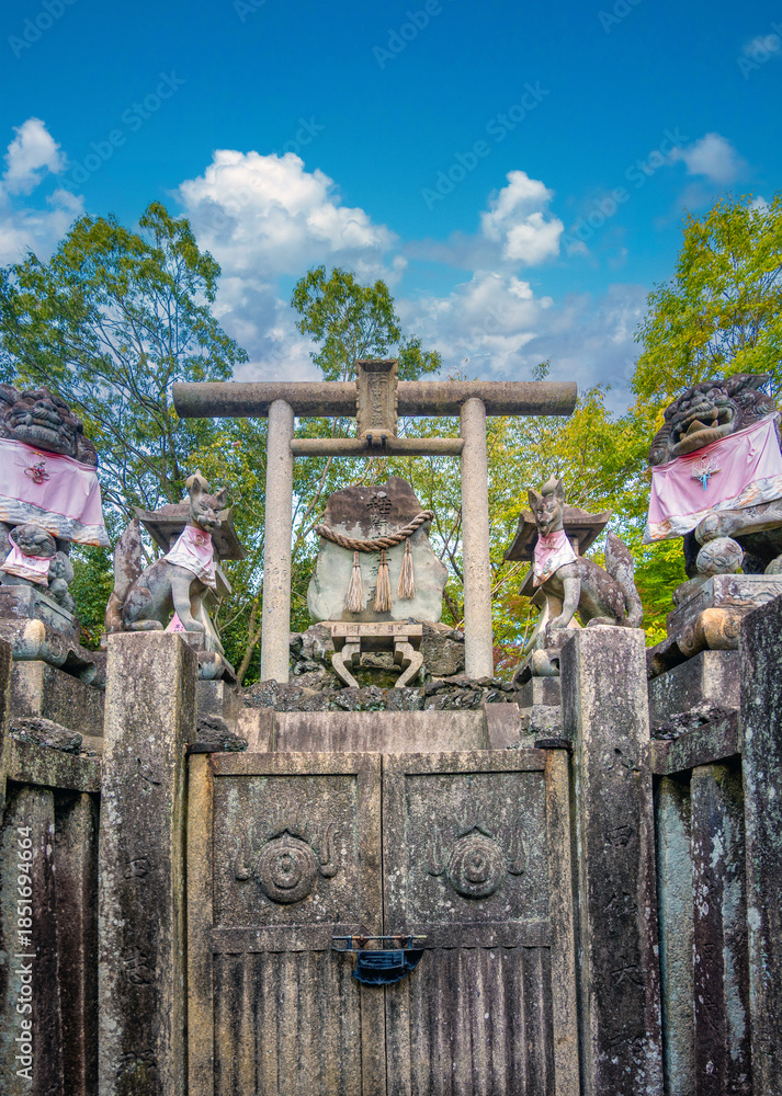 Ancient stone shrine at the top of Mount Inari in the parks of the Fushimi Inari Shrine, Fushimi-ku, Kyoto, Honshu, Japan