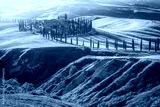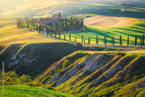 Rural scenery with agricultural lands at sunset, Tuscany, Italy