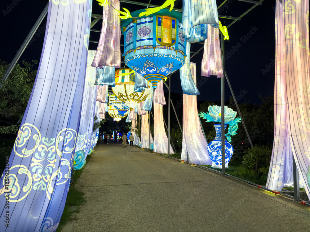 Captivating Nighttime Lantern Festival Illuminates Pathway with Vibrant Colors