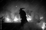 Krampus in the midst of flames is a demonic being that accompanies the religious folkloric figure. This tradition is linked to Christian mythology.