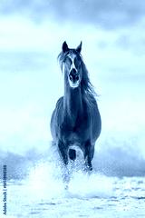 Horse run in winter snow