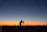 Sunrise: silhouette of photographer on work