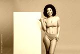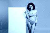 Young beauty model in pink bikini poses beside a white board for advertising and shopping campaigns highlighting confidence body positivity fitness fashion and lifestyle