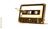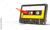 Cassette tape with pencil rewinding music history 3d