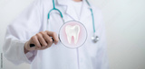 Dentist examines healthy tooth through magnifying glass showing dental care diagnosis prevention and oral hygiene concept in modern clinic representing professional dentistry medical checkup