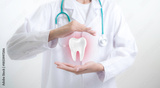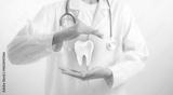 Dentist protects healthy tooth with caring hands symbolizing dental care prevention oral health safety and professional dentistry service in modern clinic medical protection concept