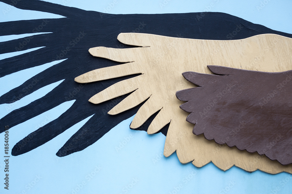 Wings of different birds on a blue background