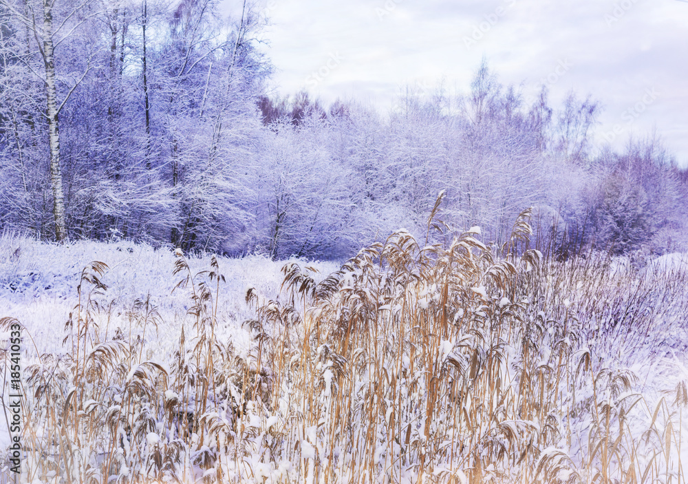 Miracle winter forest covered by snow.
