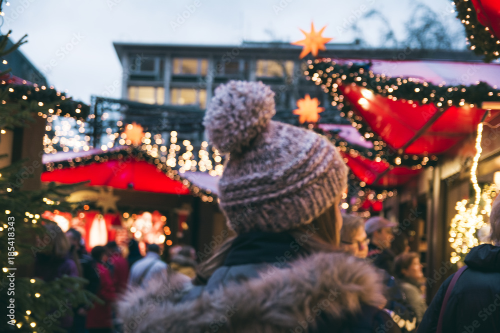 Christmas market stalls and shopping in Cologne, Germany - Köln xmas markets scene - Christmas shopping and fairy ambiance, Germany, December 2017