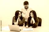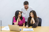 People collaborating in a coworking space discussing project details