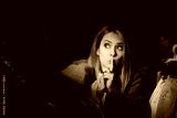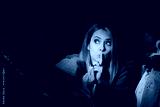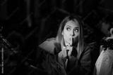 Funny Woman Trying to Steal Something in a Fashion Store. Mystery shopper with finger on lips testing textile quality