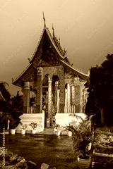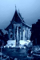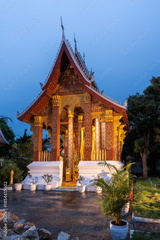 Gilded buddhist temple at dusk in luang prabang laos