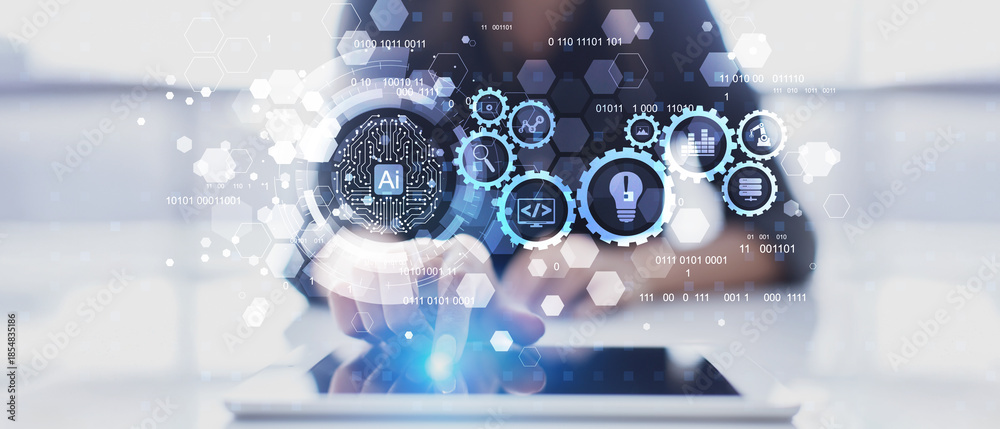AI-Driven Automation and Innovation Process Illustrated on a Digital Interface.