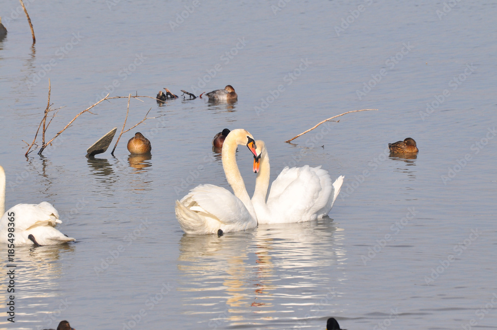 Beautiful swan in Danube river in Belgrade, Serbia , Swan on river in cold winter