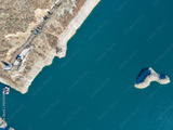 Aerial winter view of Vacha (Antonivanovtsi) Reservoir, Bulgaria