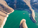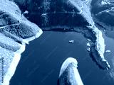 Aerial winter view of Vacha (Antonivanovtsi) Reservoir, Bulgaria
