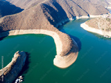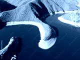 Aerial winter view of Vacha (Antonivanovtsi) Reservoir, Bulgaria