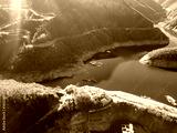 Aerial winter view of Vacha (Antonivanovtsi) Reservoir, Bulgaria