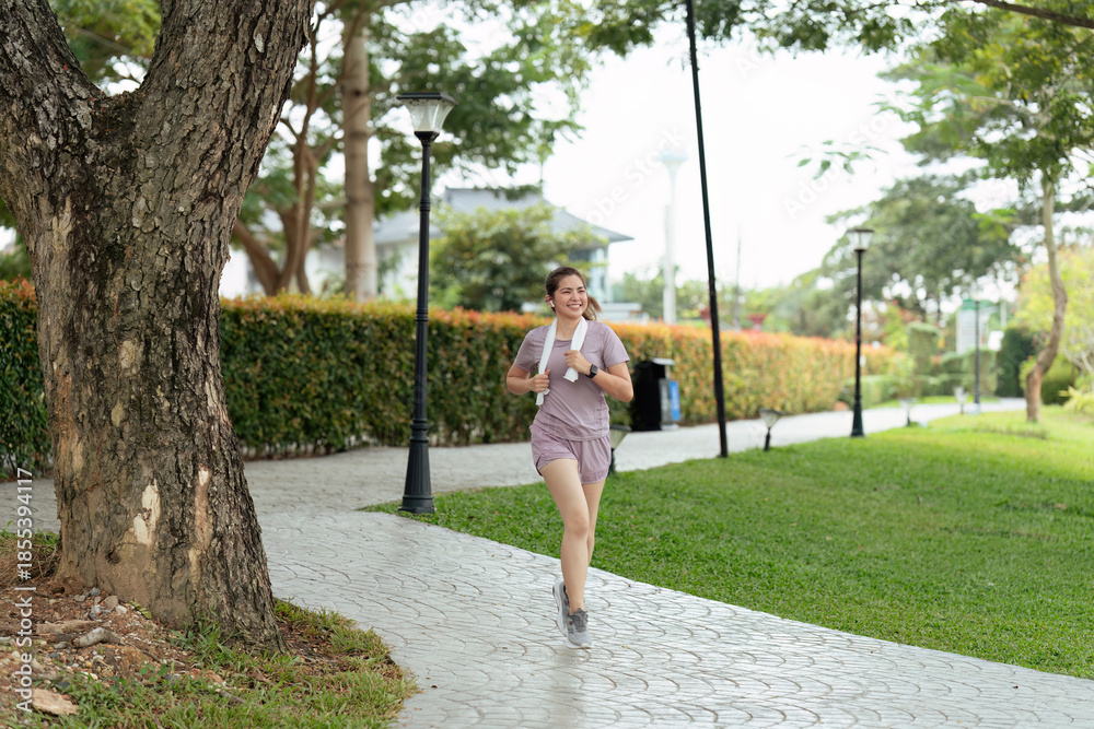 Women runner wearing sport cloths jogging in morning at park. Active morning
