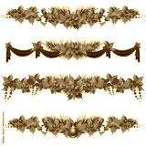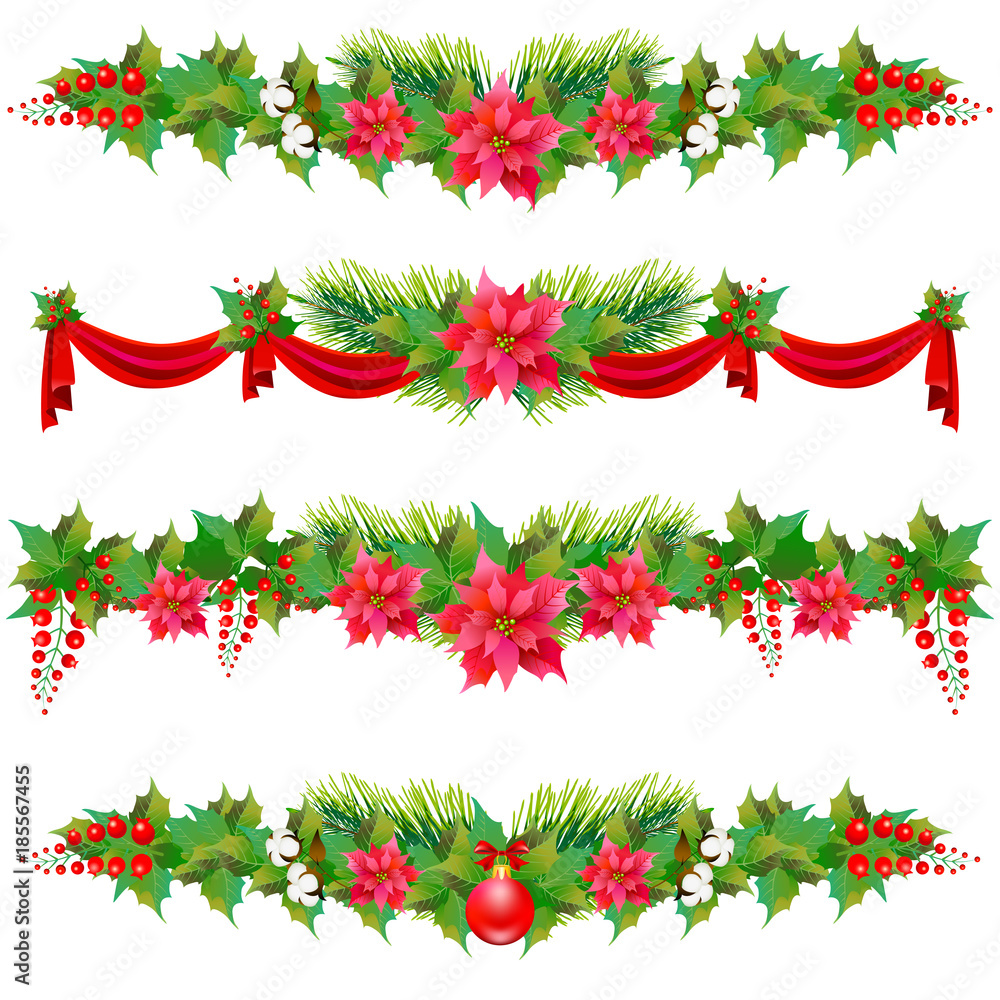 Christmas garland with poinsettia and red ribbons ,isolated on a white