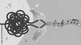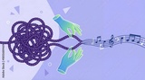 Hands untangling rope with musical notes in creative harmony