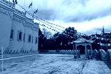 Golden Buddhist stupa in Taman Lumbini temple in Berastagi, Sumatra, Indonesia