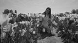 Woman enjoying colorful tulip field in lisse, netherlands, holding basket and bending to smell flowers under sunny blue sky, surrounded by vibrant blooms.