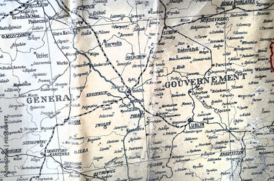 German vintage map of Central Europe circa 1944 fragment.Poland under occupation.History of European integration.