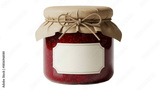 Jar of raspberry jam isolated PNG, homemade preserve with blank label and rustic twine on transparent background, food gift concept