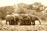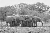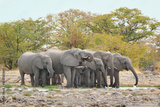Herd of elephants drinking water from a water hole, Etosha National Park, Namibia, Africa.