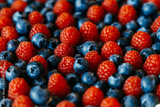 Fresh red raspberries and blue blueberries are beautifully arranged together, showcasing vibrant colors and textures, perfect for healthy eating and culinary presentations